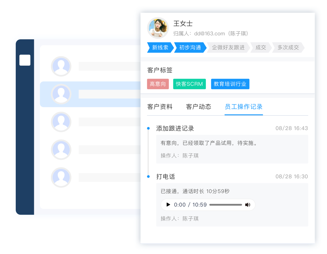 追蹤客戶行為軌跡,洞察客戶需求,及時通知銷售跟進